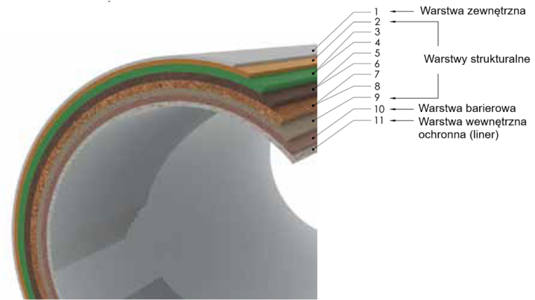 Each GRP pipe manufactured using the CC method has a a precisely designed layered structure, responsible for: