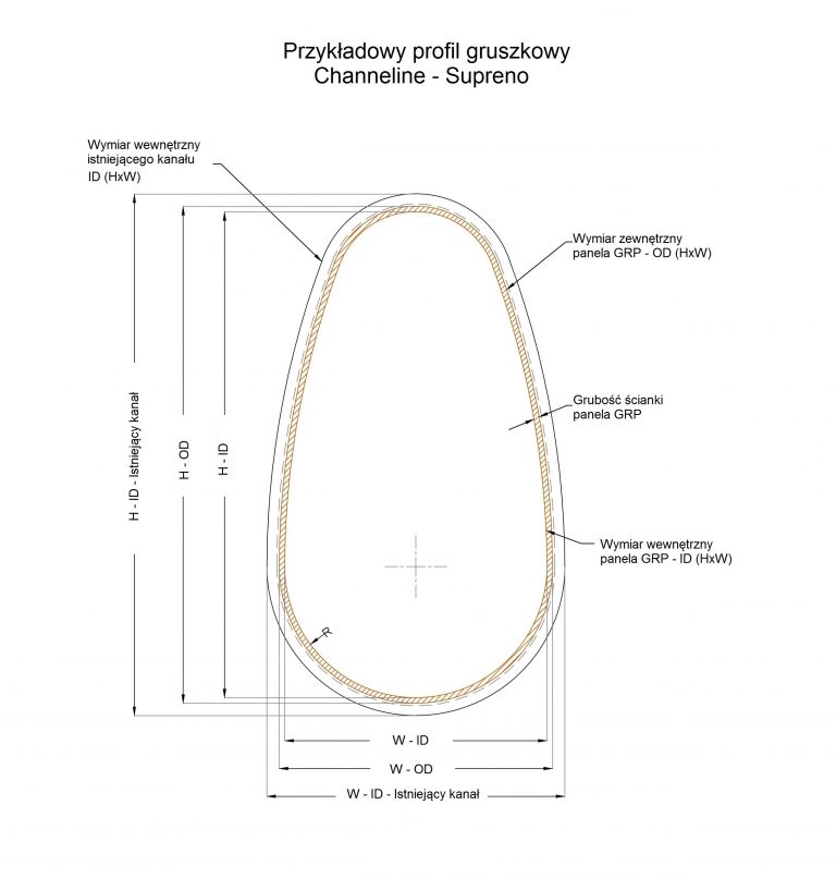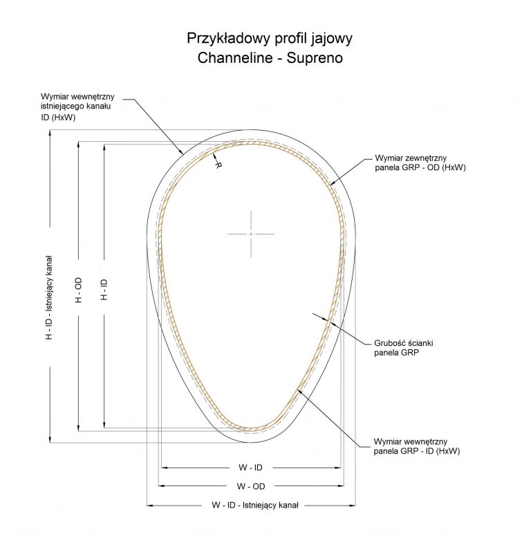 Profil jajowy stosowany jest najczęściej w przypadku kanałów o silnie zdeformowanym przekroju. Dzięki swojej konstrukcji pozwala na optymalne odwzorowanie istniejącego kształtu, przy jednoczesnym zachowaniu wysokiej wytrzymałości hydraulicznej i strukturalnej.