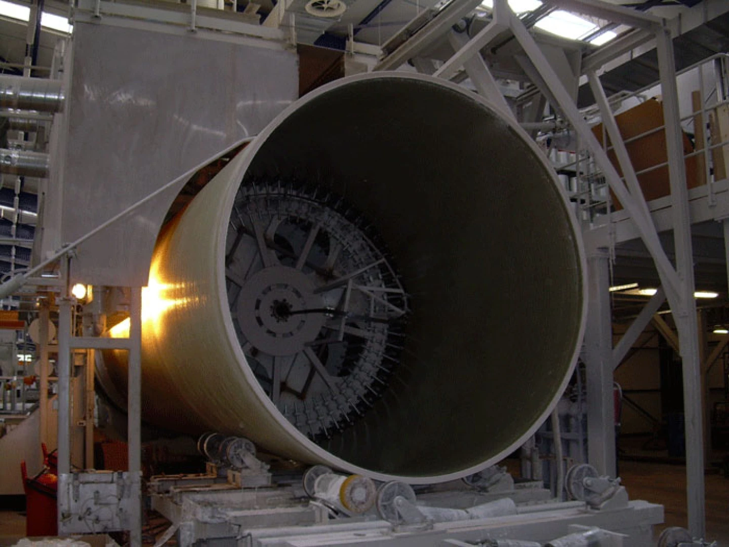 Główne urządzenie wykorzystywane w procesie nawijania włóknem ciągłym to linia produkcyjna oparta na ciągłej taśmie stalowej, która – wsparta na belkach – tworzy obrotowy trzpień cylindryczny.